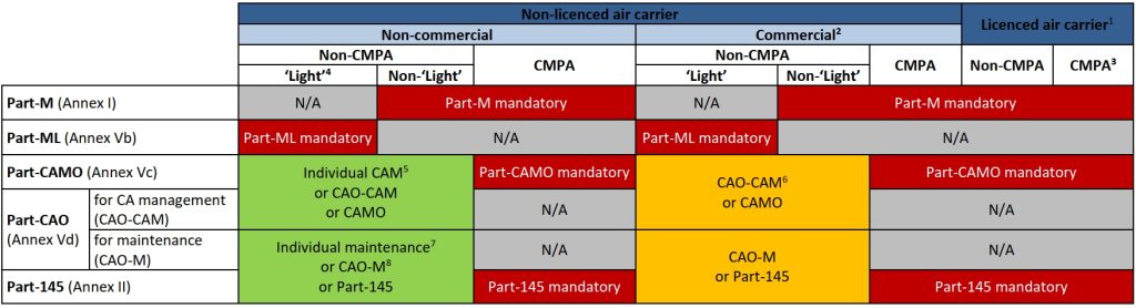 - Le PART-M dit quoi faire et quand le faire (non-light / CMPA aviation commerciale ou non)