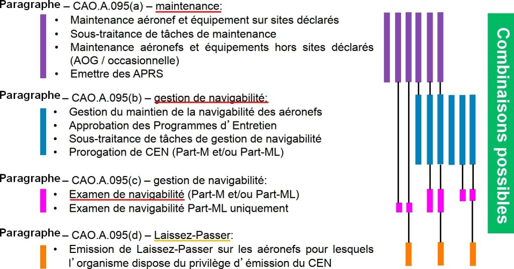 Objet : Est un agrément combiné et simplifié destiné à l’aviation non-commerciale et à certains vols commerciaux limités. Il fusionne en un seul agrément les privilèges de gestion de la navigabilité (CAMO), de maintenance (145 ; ancien PART-145 sous-partie F), et d’examen de navigabilité.